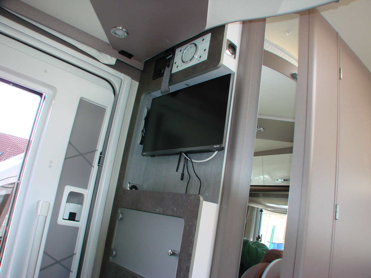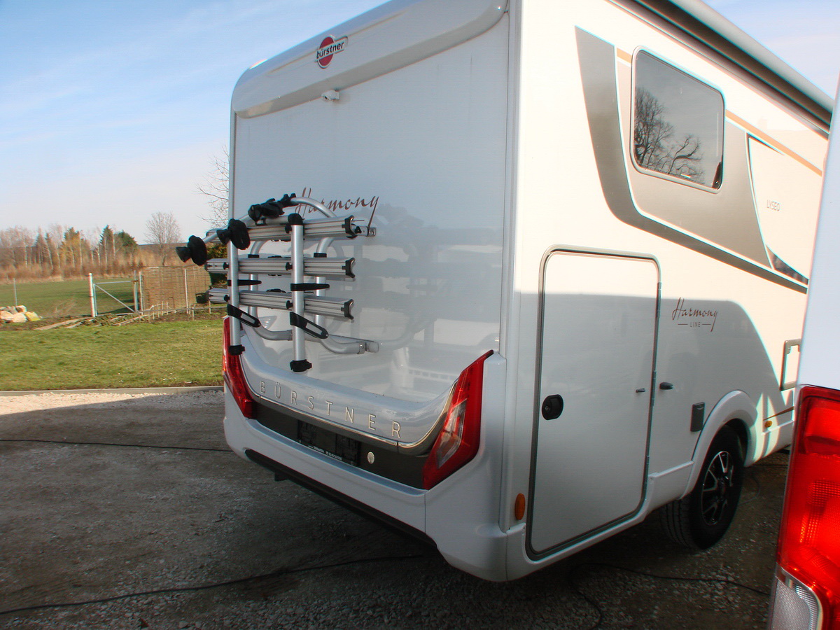 Fiat Bürstner Lyseo IT 690 Harmony Line; ca. 6990 cm lang (+ Fahrradträger); für 4 Personen; 1 Festbett; 1 Hubbett; Kühlschrank mit Gefrierfach; Küche mit Spüle und Herd; Sitzgruppe; Markise; Fahrradträger; große Heckgarage; Heizung; Warmwasser; Navigationssystem; Rückfahrkamera; Klimaanlage im Fahrerhaus; elektrische Trittstufe; Eigengewicht 3019 kg; zulässiges Gesamtgewicht 3500 kg; Frischwassertank 120 Liter; Abwassertank 90 Liter
